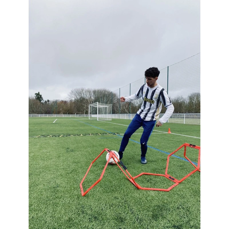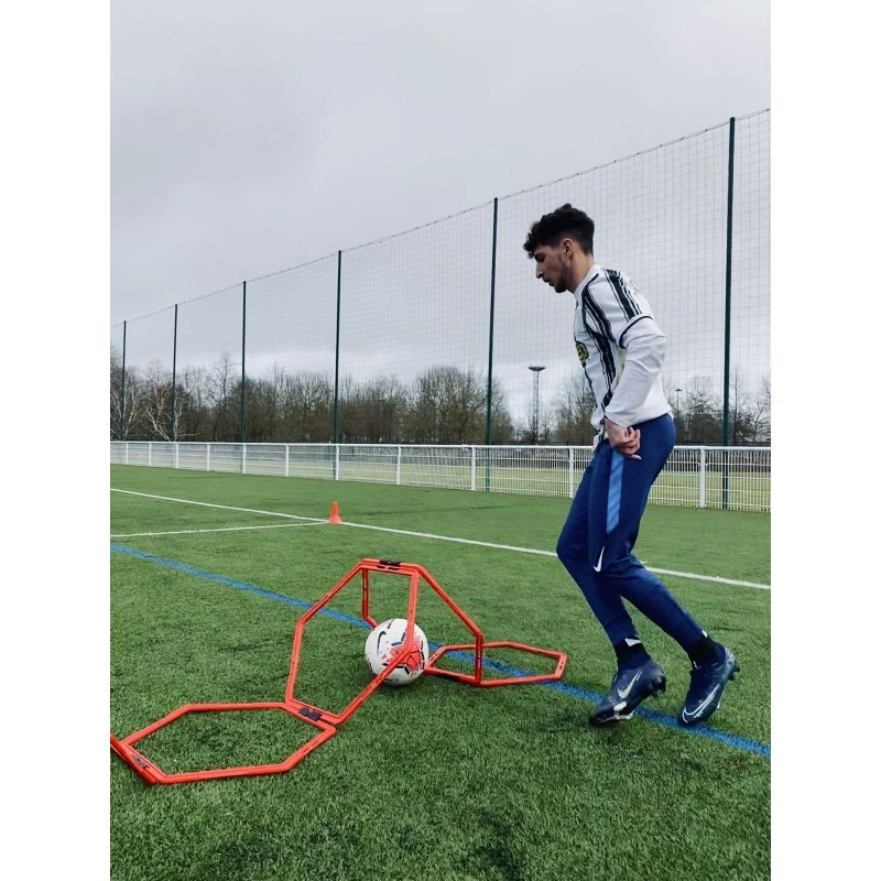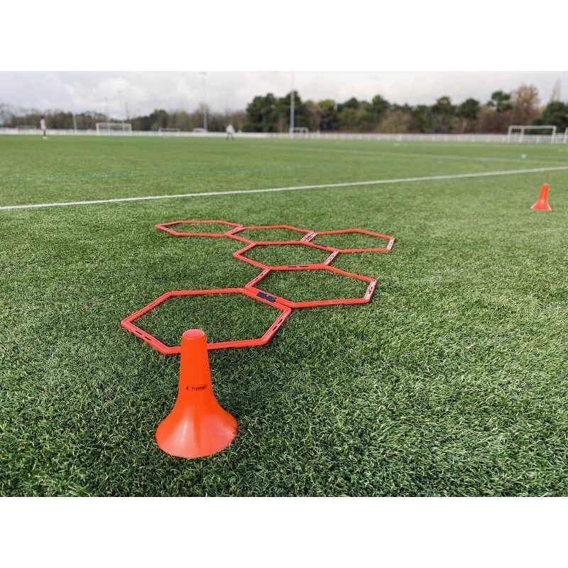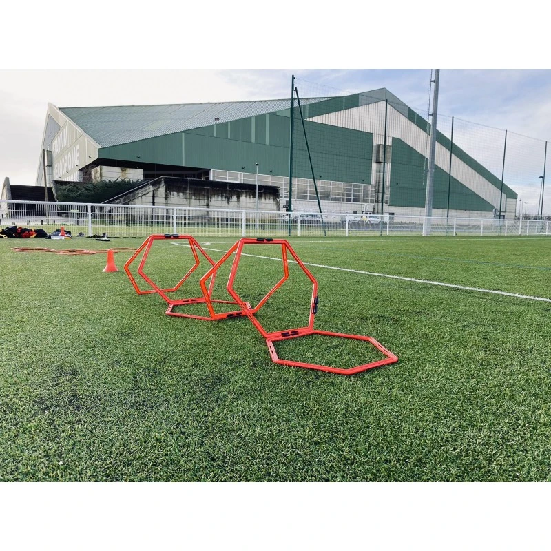 Cette échelle d’agilité hexagonale se compose de 12 cerceaux hexagonaux de 55 cm de diamètre