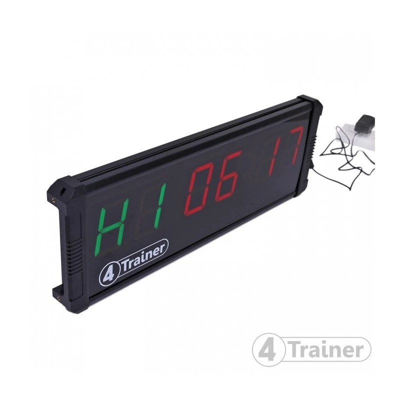 Le Gym Timer 4Trainer présente un grand affichage LED, avec des chiffres d’une hauteur de 10cm très visibles. Il comprend une douzaine de paramètres pré-définis et permet de programmer des intervalles spécifiques pour des sessions d’entraînement personnalisées .