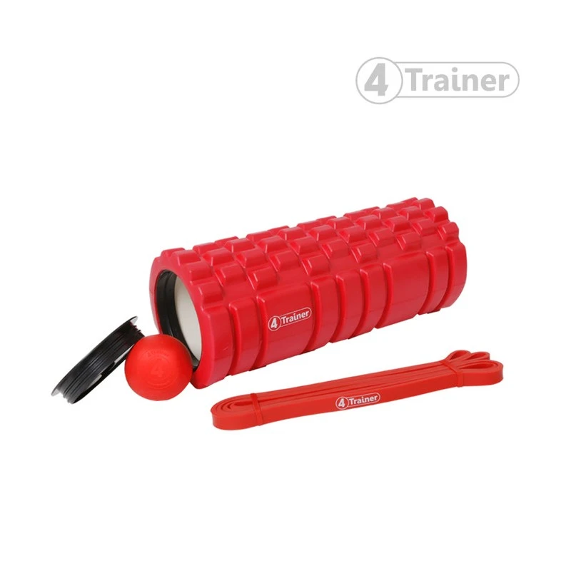 Le rouleau de massage 4TRAINER proposé dans le kit Mobilité est un cylindre creux en mousse EVA soft, qui permet non seulement de se masser soi-même de manière simple et efficace, mais également de transporter les accessoires complémentaires livrés dans ce kit, à savoir la bande élastique Powerband Extra light rouge, ainsi que la balle lacrosse rouge.