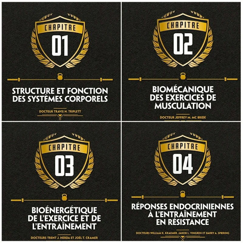 • 24 chapitres qui présentent les informations les plus complètes sur la structure et la fonction des systèmes corporels, la psychologie du sportif, les techniques d’exercices, les adaptations d’entraînements, la conception de programmes, l’organisation et la gestion des équipements, les tests et évaluations, etc.