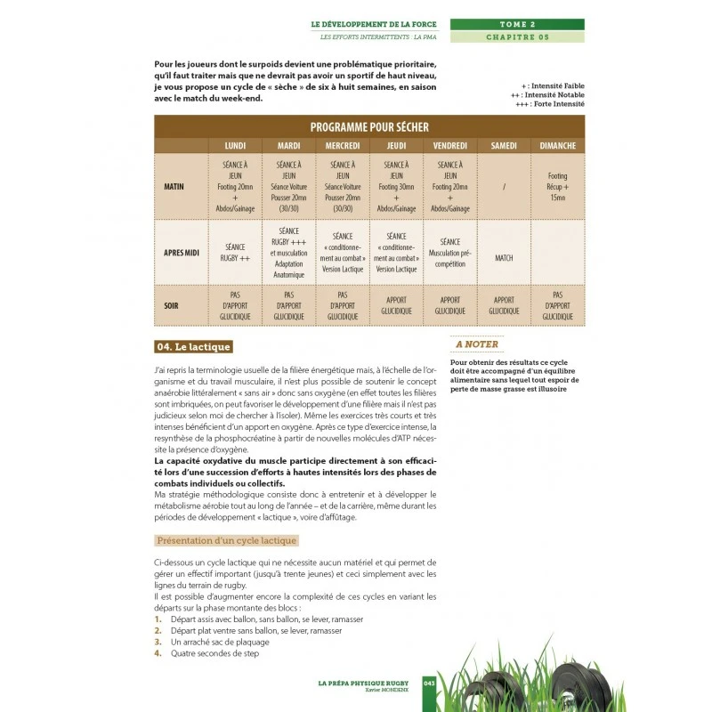 Il donne les clés pour préparer le joueur physiquement au combat par la mise en oeuvre de situations d’entraînement spécifiques .