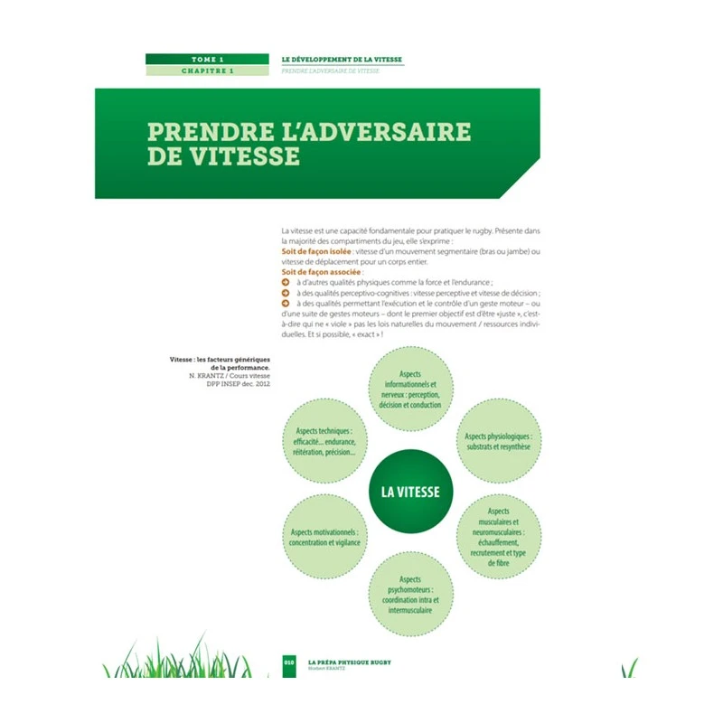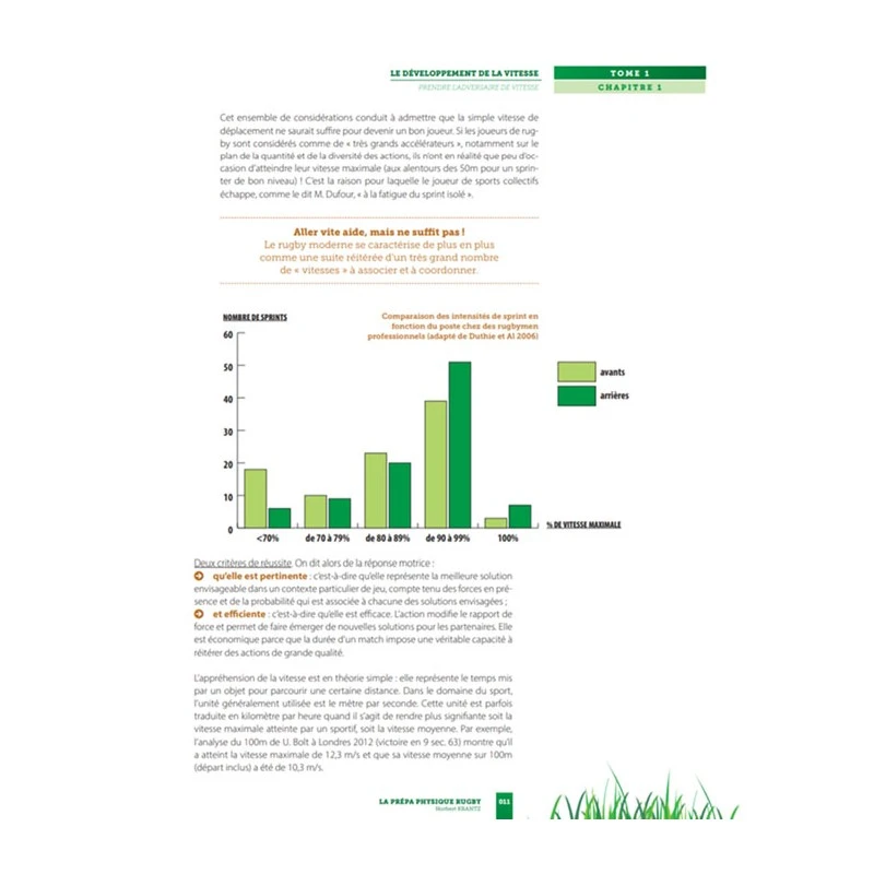 La prépa physique Rugby, le développement de la Vitesse est un ouvrage qui aborde de manière complète et très illustrée l’entraînement des qualités de vitesse dans le rugby.
