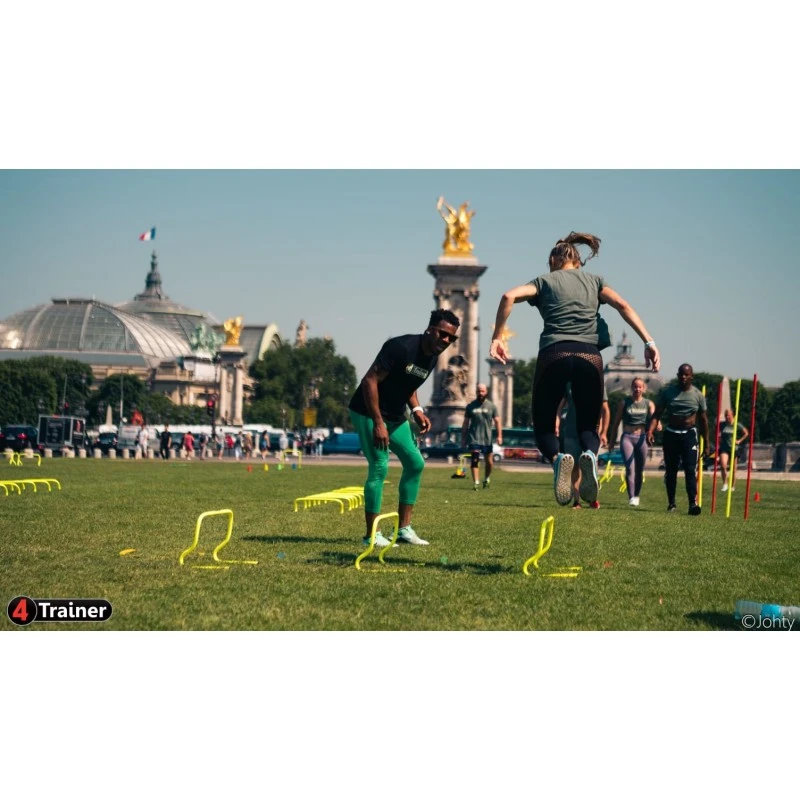 La hauteur de ces mini haies d’entraînement est idéale pour travailler spécifiquement la fréquence, la coordination, le travail du pied et la pliométrie moyenne. Ces qualités sont essentielles en préparation physique pour améliorer la technique et la vitesse de course. Les mini haies d’entraînement 4Trainer sont très légères et facilement transportables. Fabriquées en PVC très résistant, elles ont la particularité de se plier si l’on marche dessus et de revenir à leur état initial. Incassables, elles peuvent être utilisées en toute sécurité à tout âge et pour tous niveaux.