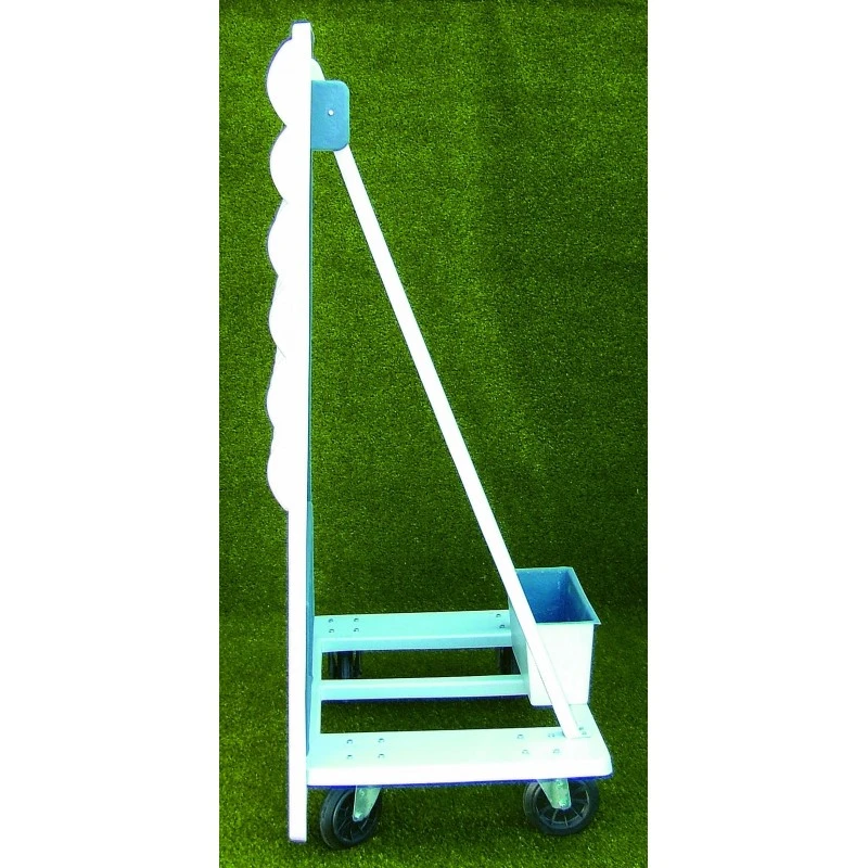 Il est en fibre de verre et est monté sur 4 roues, dont une avec frein.