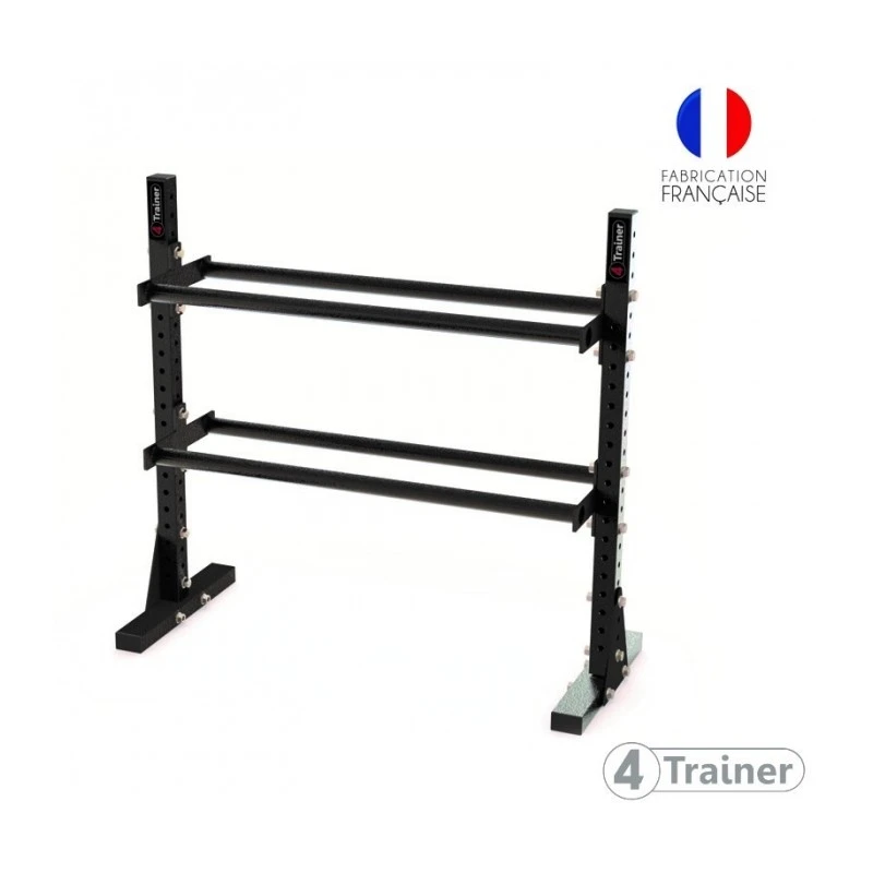 Des étagères plateau sont également disponibles en option pour poser les kettlebells, ou les haltères.