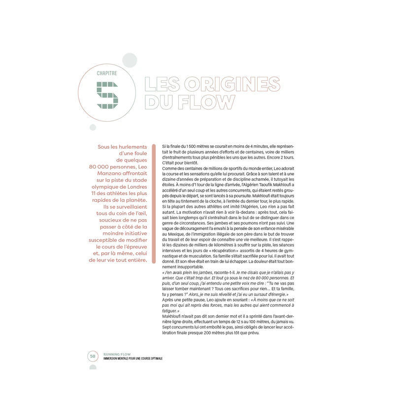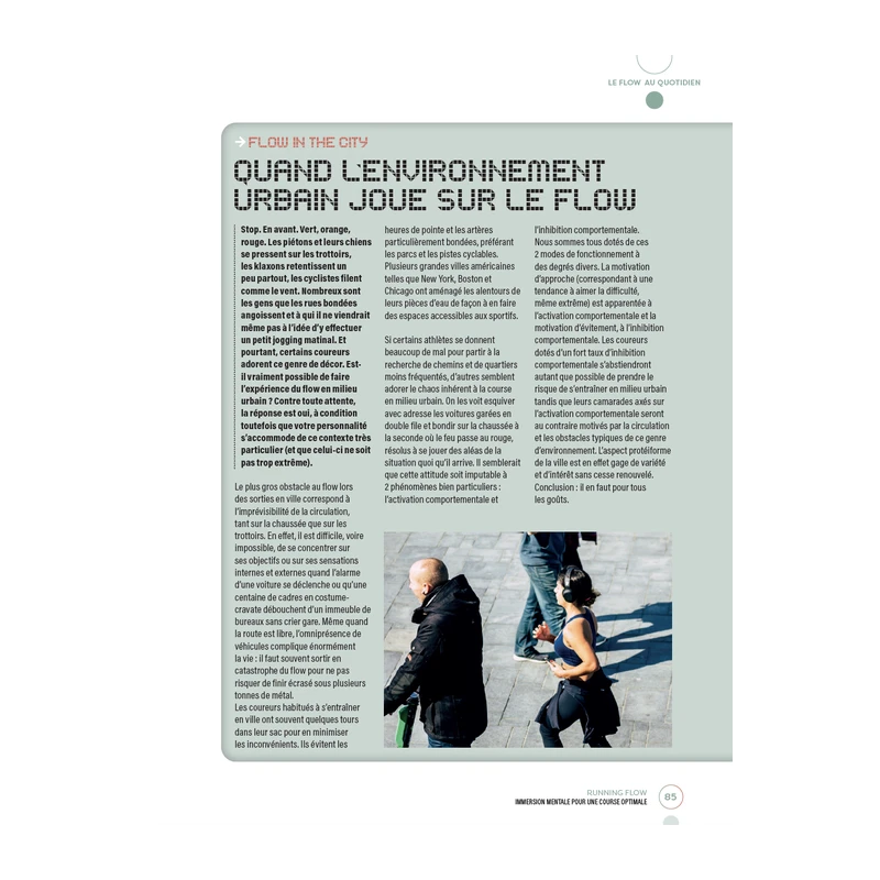 Cet ouvrage est un guide théorique et pratique pour appliquer les bienfaits du flow à la course à pied.