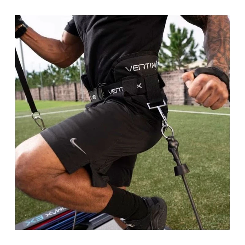 La ceinture VERTIMAX® WAIST est disponible en trois tailles (S, M, L) pour convenir à un large éventail d’athlètes. Remarque : un harnais est nécessaire pour maintenir les harnais en place lors de l’entraînement. Celle ci est fournie avec la plateforme d’entraînement Vertimax et leRAPTOR Vertimax ou indépendamment avec VERTIMAX® HIP FLEXOR